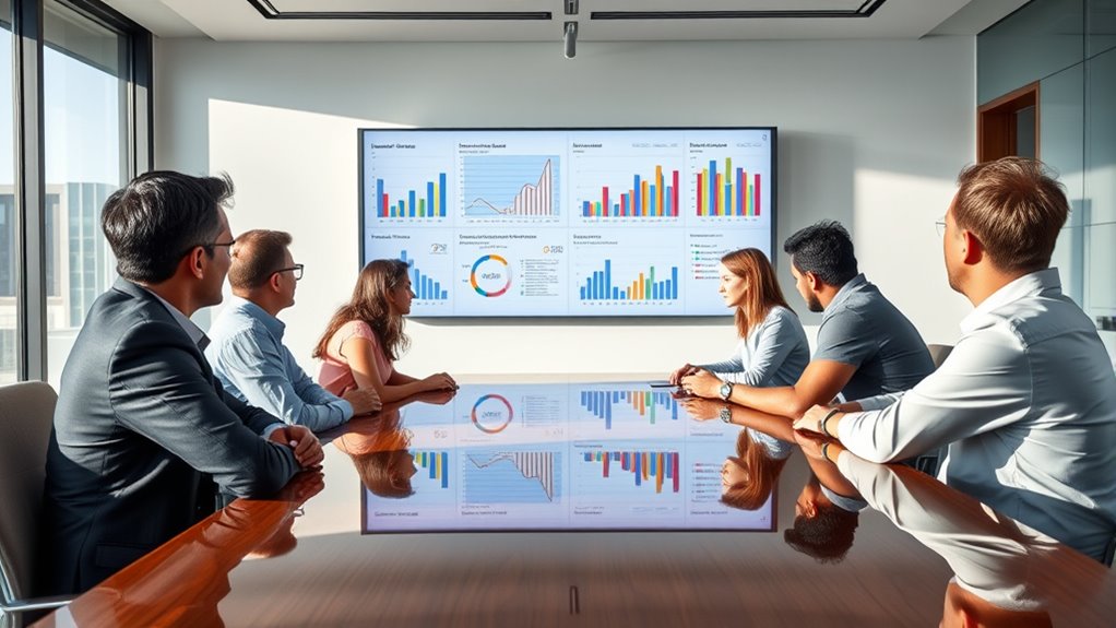 To build dashboards stakeholders actually read, focus on delivering key metrics that answer their main questions clearly and concisely. Use simple visuals like bar or line charts, minimizing clutter and highlighting important data points with thoughtful colors. Make sure your data is current and accurate to boost trust. Include brief explanations or context where needed, and involve stakeholders early to refine the design. Keep improving your dashboards—there’s more to uncover for creating truly effective tools.