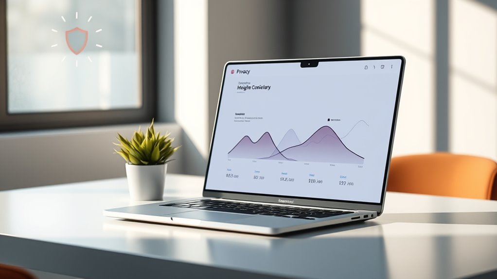 You can implement privacy-centric analytics using tools like Google Analytics 4, which prioritizes user privacy and offers cookieless tracking options. Privacy-focused platforms such as Matomo and Fathom also provide detailed insights without compromising user data. These tools help you gather valuable metrics while respecting privacy laws, ensuring your marketing efforts remain effective. Embracing these solutions lets you adapt seamlessly to a cookie-lite world without losing critical data insights.
