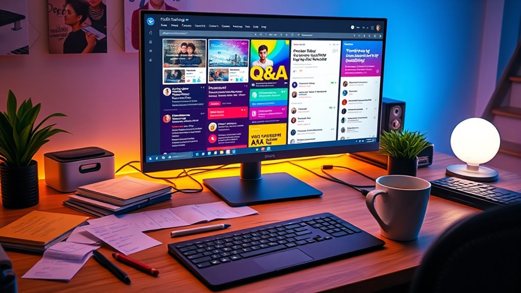 Using Q&A and forums allows you to tap into your community’s authentic questions and insights, turning passive followers into active participants. By engaging with their feedback, you can create content that truly resonates, address gaps with tailored resources, and strengthen trust. Consistently responding and showing appreciation fosters loyalty and a vibrant environment. This strategy helps you refine your approach and build meaningful connections—if you want to discover how to make this work best for you, keep exploring.