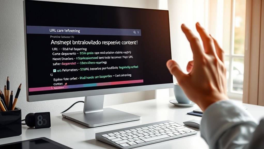 By mastering URL parameter handling, you’re steering your website’s ship through a stormy sea, avoiding the whirlpools of duplicate content and crawl traps. Think of parameters as the unpredictable currents—if left unchecked, they can lead your site astray. But with careful navigation, you chart a clear course toward better SEO, ensuring your content shines brightly like a lighthouse guiding visitors safely home. Stay vigilant, and your site will thrive amidst the digital waves.