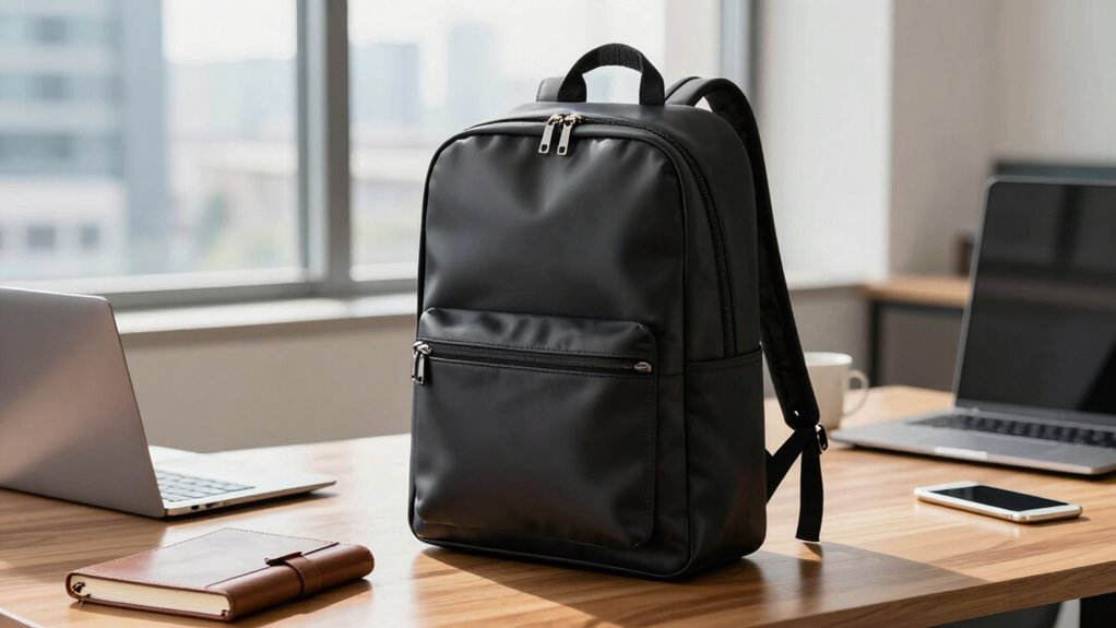 How can you guarantee your business backpack withstands the rigors of frequent travel? The key lies in choosing high-quality materials like ballistic fabric, nylon, or high-density polyester, which are built to last. Water-resistant or waterproof fabrics provide essential protection for electronics and documents, preventing damage from rain or moisture. Reinforced stitching and sturdy zippers add strength and durability, ensuring the backpack can handle daily wear and tear. Eco-friendly fabrics are also a smart choice, offering sustainability without compromising resilience. Ultimately, the durability of your backpack depends on a combination of quality materials, solid construction techniques, and protective features like padded compartments. Investing in these aspects means your backpack will stand up to the demands of constant travel, keeping your gear safe and intact.