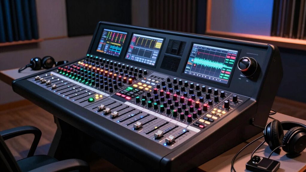 If you’re looking for the 15 best mixer consoles for live streaming in 2026, I’ve compiled top options like Podcaster bundles, MaonoCaster’s multi-channel mixers, Yamaha’s reliable interfaces, and versatile audio mixers from Phenyx, Pyle, Boytone, and more. These models offer multiple inputs, onboard effects, Bluetooth, and portability, making them perfect for different setups. Keep going, and you’ll discover detailed insights to help you choose the perfect mixer for your streaming needs.