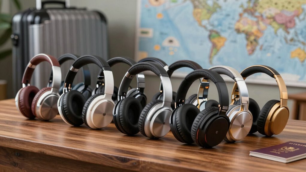 While choosing noise-canceling headphones for travel, it’s essential to take into account their effectiveness in reducing ambient noise. I look for headphones that can block up to 99% of external sounds, as that significant reduction makes a real difference during my journeys. Hybrid active noise-canceling technology is also a game changer; it uses multiple microphones to tackle a wider range of frequencies, enhancing overall noise reduction. I pay attention to decibel (dB) ratings, since a higher dB reduction means stronger performance, especially against low and mid frequencies like engine hums or crowd chatter. Ultimately, I appreciate headphones that adapt to my environment automatically, adjusting their settings to maximize noise cancellation as conditions change during my travels.