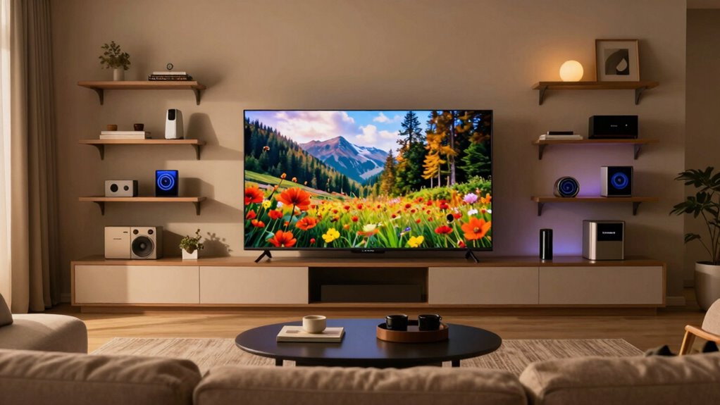 When I explore OLED TV deals for 2026, smart TV capabilities stand out as a crucial factor. I love how many models come with built-in voice assistants like Alexa and Google Assistant, making it easy to control everything hands-free. Plus, having direct access to popular streaming apps like Netflix and Disney+ from the TV interface is a game-changer for binge-watching. I appreciate advanced features like AI-powered recommendations and personalized profiles, which enhance my viewing experience. The ability to integrate with smart home devices means I can connect my TV to speakers and lights for seamless entertainment. Ultimately, the promise of over-the-air updates ensures my TV remains cutting-edge with new apps and features, making it a smart long-term investment.