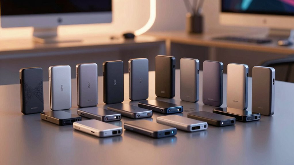 Ever wonder why portability is a top priority for Mac users choosing an external SSD? It’s all about ease of transport and quick access. Compact drives that weigh under 2 ounces are ideal, making them effortless to carry in pockets or small bags. Usually less than 4 inches long and under half an inch thick, these drives don’t add bulk when connected to your Mac. Their slim profiles prevent any cumbersome feeling, even when plugged in. Despite their small size, many offer impressive storage capacities—1TB or more—perfect for mobile workflows. The goal is to find a drive that’s lightweight and small without sacrificing storage space or performance. This balance guarantees you can work seamlessly on the go, without the hassle of bulky equipment.