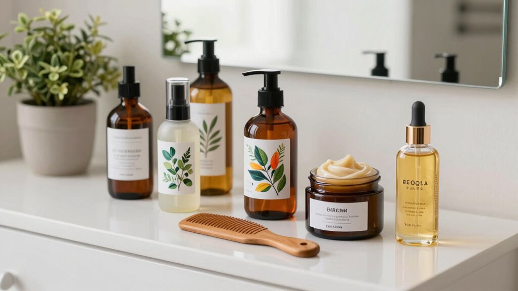 Imagine your hair as a delicate flower; it needs care to flourish. I’d avoid harsh sulfates, which can strip moisture, and alcohols that dry out strands like a sunbaked desert. Silicone can build up, suffocating your hair and making it look lifeless. Also, steer clear of artificial fragrances and dyes—they can irritate your scalp. I’ve learned that gentle, nourishing ingredients work wonders, letting my hair bloom beautifully instead of wilting away.
